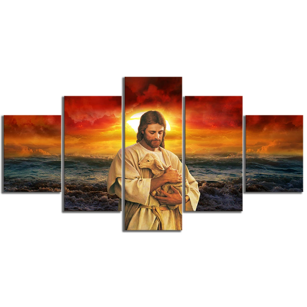 Современные Фотографии Гостиной HD Печатный холст 5 панелей Иисус в...