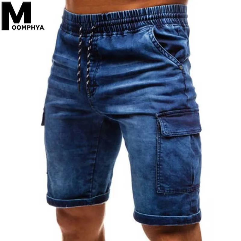 Мужские Плиссированные шорты Moomphya, синие зауженные джинсы до колена в уличном стиле, в стиле хип-хоп, 2019