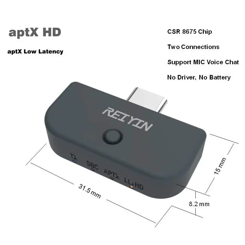 WT-HD05 оснащен улучшенным чипом CSR8675 с apt-X HD, функцией низкой задержки aptX. Нет необходимости устанавливать драйвер и права, подключи и работай. Это устройство может быть подключено к порту type-C устройств аудиовыхода и сопряжено с Bluetooth-наушниками/динамиками, которые обеспечивают беспроводную передачу звукового сигнала. Кроме того, он может сопрягаться с двумя Bluetooth-наушниками или Bluetooth-динамиками одновременно, позволит вам наслаждаться фильмом и играть в игру с любимым и не будет беспокоить вашу семью.