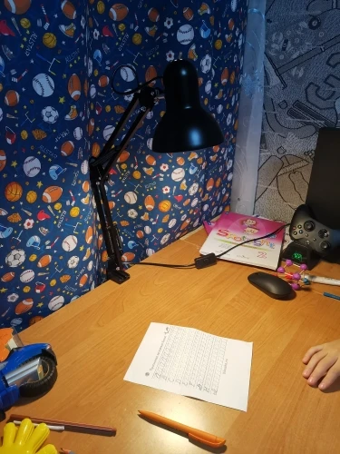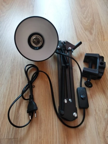 Идеальная лампа для маленького офиса. Нога может поставить себя в несколько позиций. Пластиковая стопа немного скользит. Немного короткий провод и включите провод. Правильное время доставки