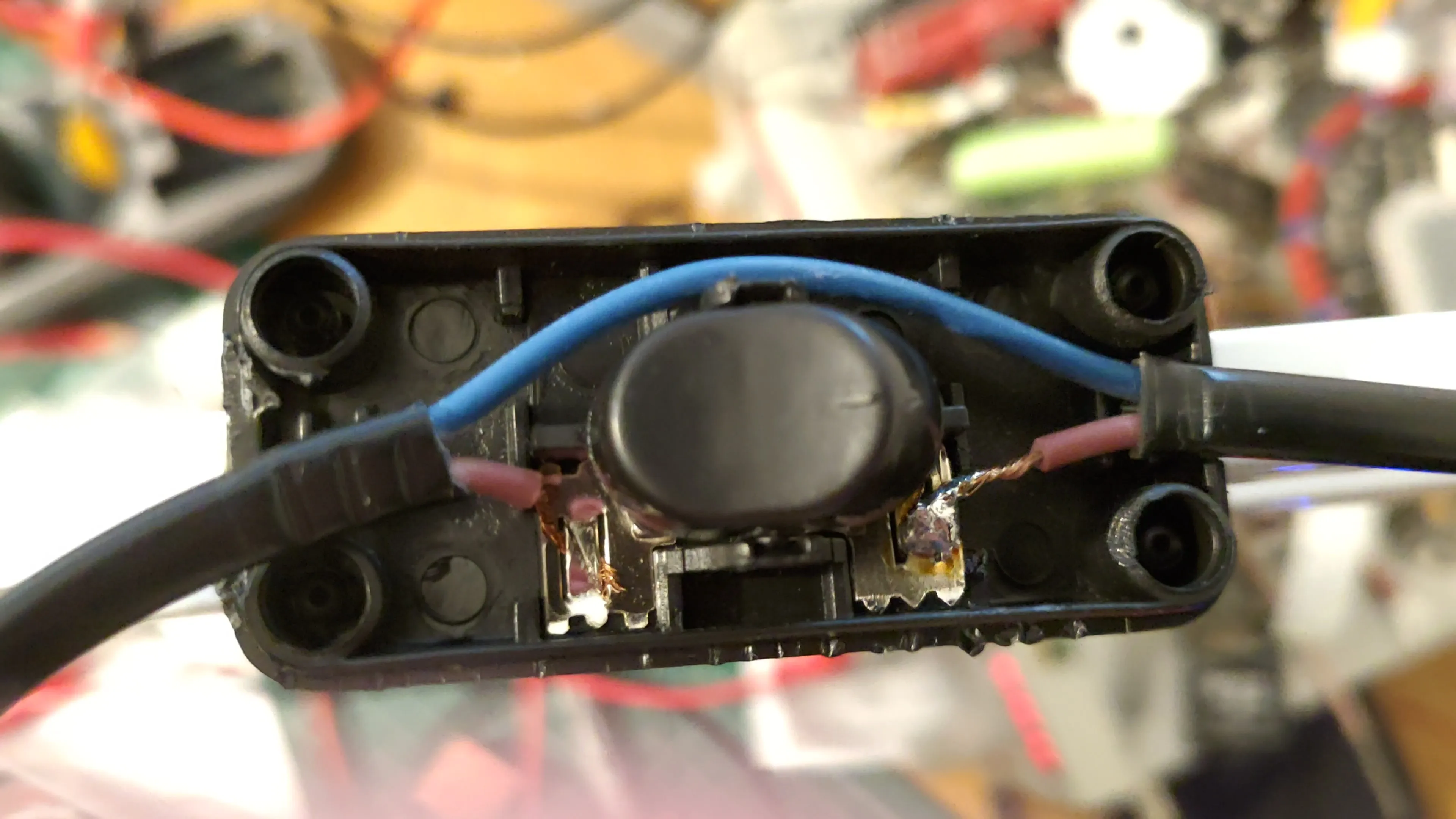 Очень плохое качество переключателя провод просто обжимается очень сильно, провод пришел свободно внутри моего выключателя во время доставки и лампа даже не работает. На мой взгляд, это может быть опасным. Я отремонтировал свой выключатель, паяв провод назад, см. Фото.