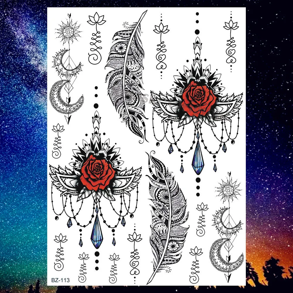 Временные татуировки REJASKI слон Ганеш Бабочка для женщин наклейка Мандала Цветок черная хна сексуальные татуировки Искусство Пользовательские татуировки
