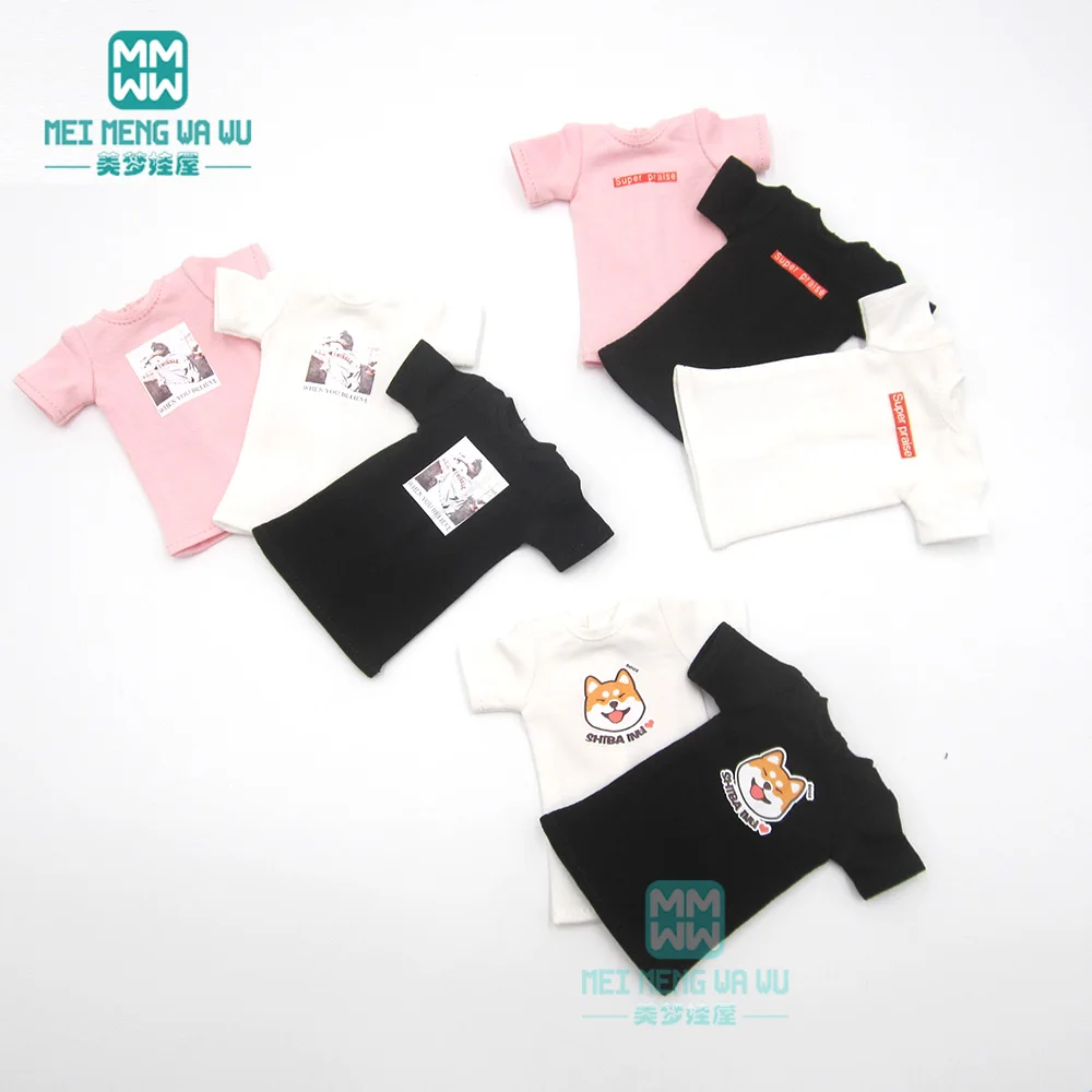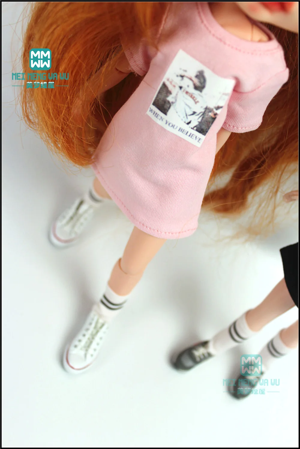 1 шт., Одежда для кукол Blyth, белаяРозоваячерная длинная футболка ...