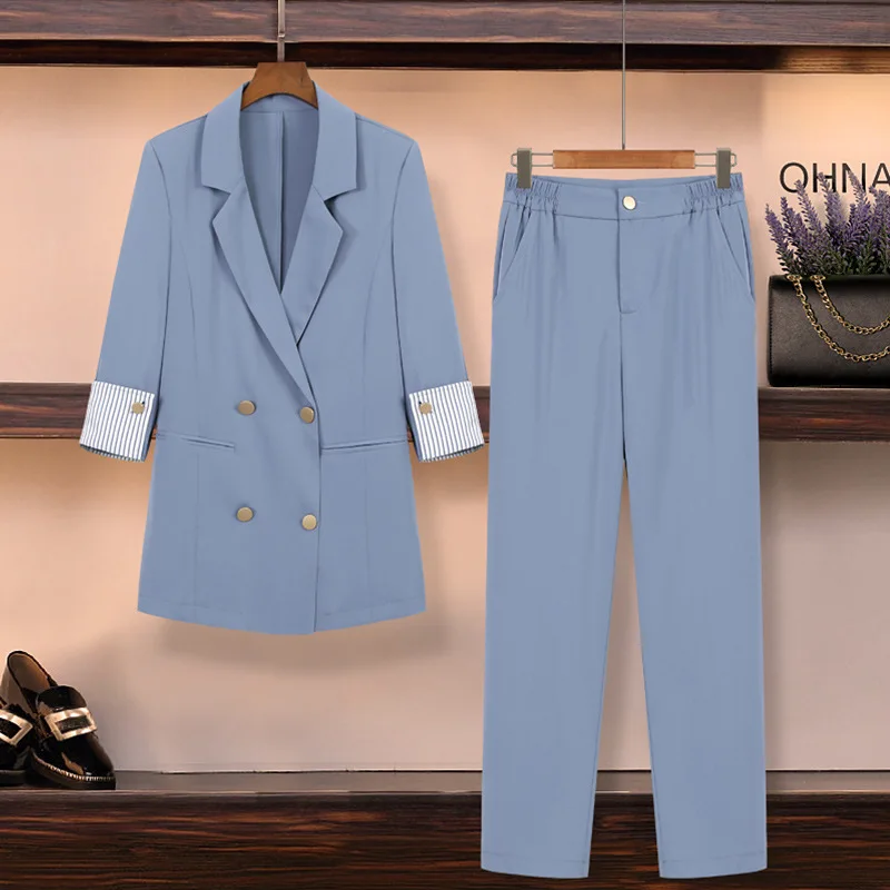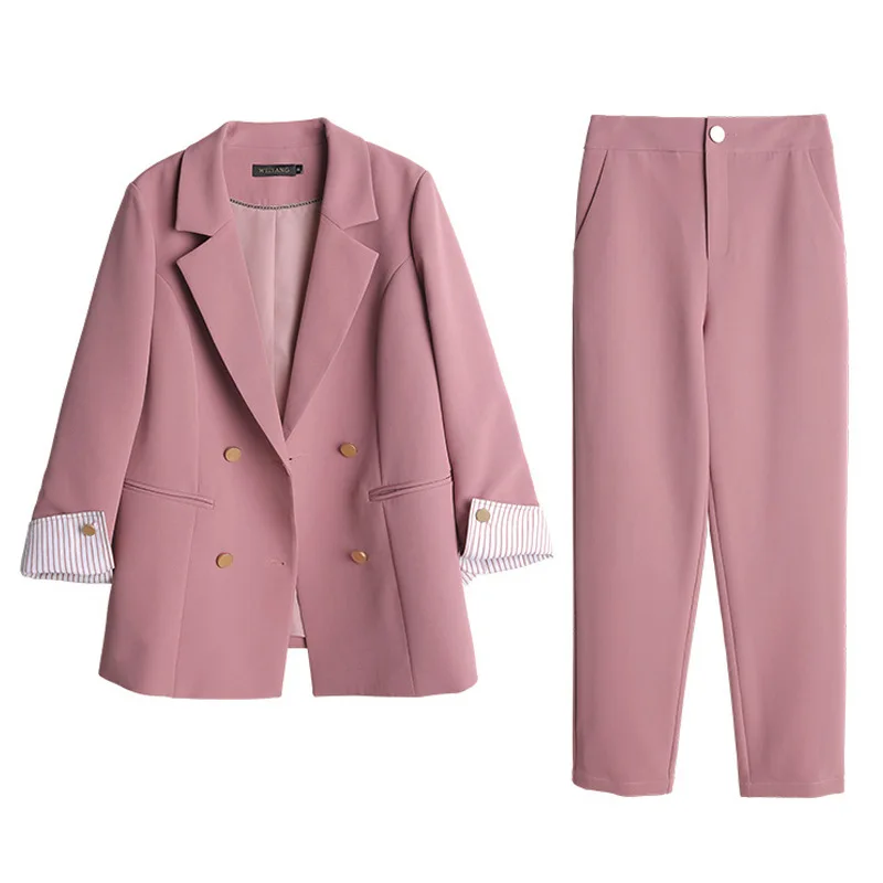 Женские костюмы, осень 2021, новый женский темпераментный двубортный костюм, пиджак большого размера, повседневные штаны с ножками, комплект из двух предметов