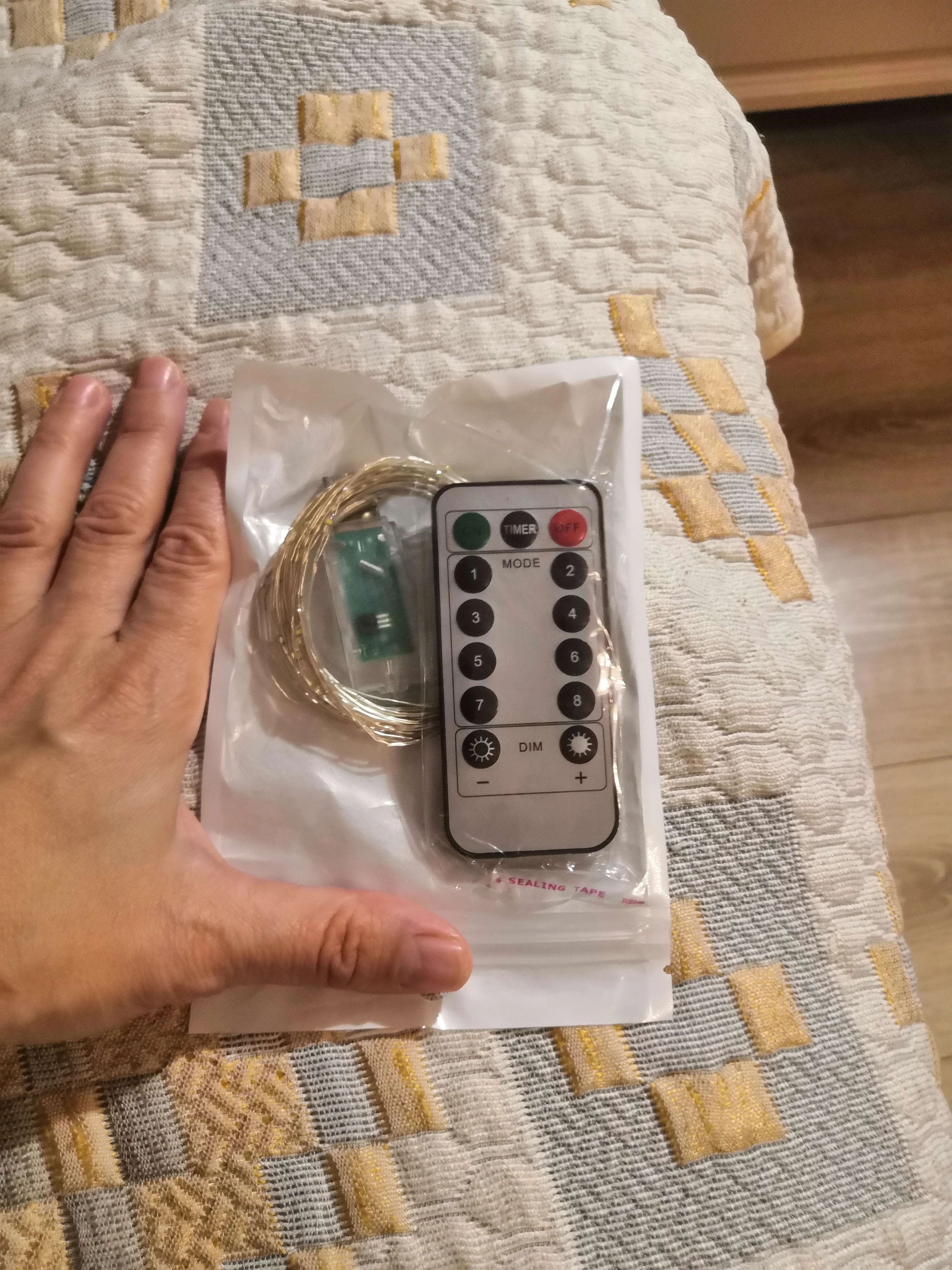 Гирлянда работает, 8 режимов, регулируется яркость. Проводки тонюсенькие, тоненькая проволока, надеюсь попугай не обнаружит и не перегризет. Собирать надо будет аккуратно. Пульт без батарейки, но купить не проблемма. Доставка 3 недели. Отслеживалась.