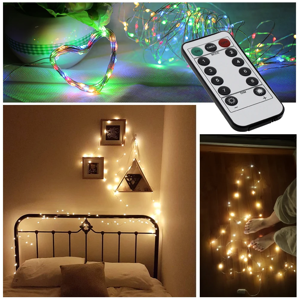 USB СВЕТОДИОДНЫЙ светильник-гирлянда s, цветная Новогодняя гирлянда, медная проволока, сказочный светильник для внутреннего, наружного, свадебного, Рождественского украшения