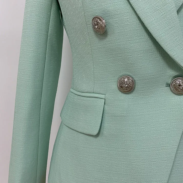 Женский двубортный блейзер в стиле барокко, мятно-зеленый классичес...