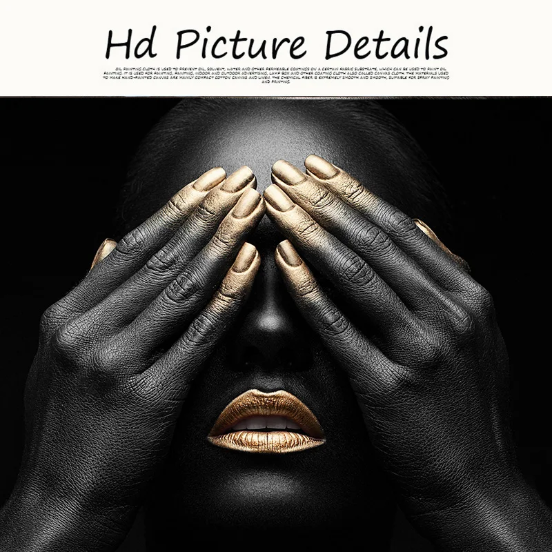 Черная рука и Золотые губы Обнаженная женщина картина маслом на холсте Куадрос плакаты и принты африканская Настенная картина для гостиной