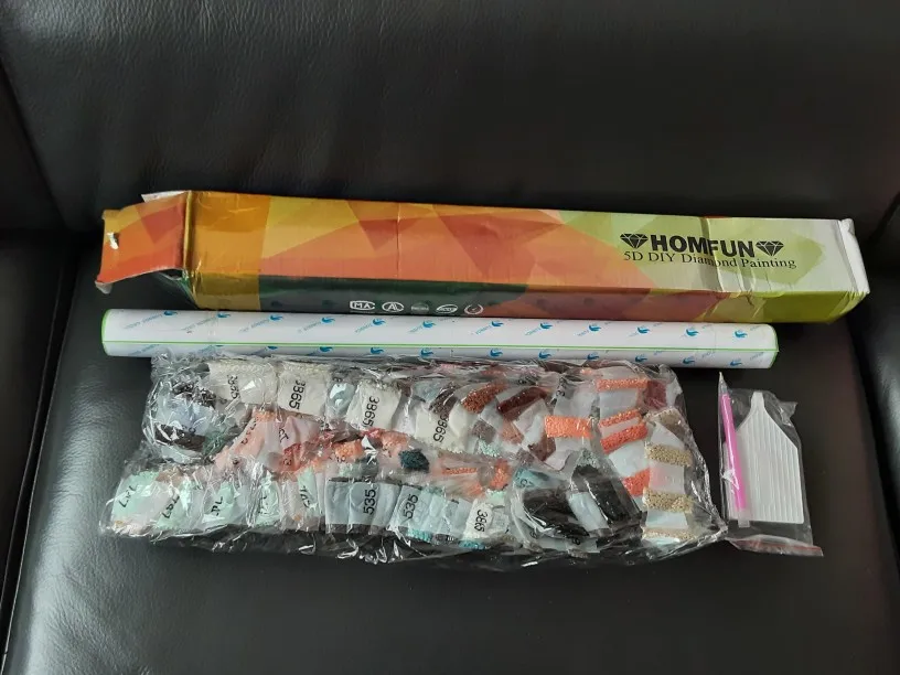Colis bien emballé. Kit complet diamants toile et accessoires. Les couleurs sont magnifiques les diamants sont parfait pas de déchets, pas d'abîmer. La toile est parfaitement imprimée j'ai des ronds pour mes ronds. On les voit très bien, il sera très agréable à faire. Je recommande.