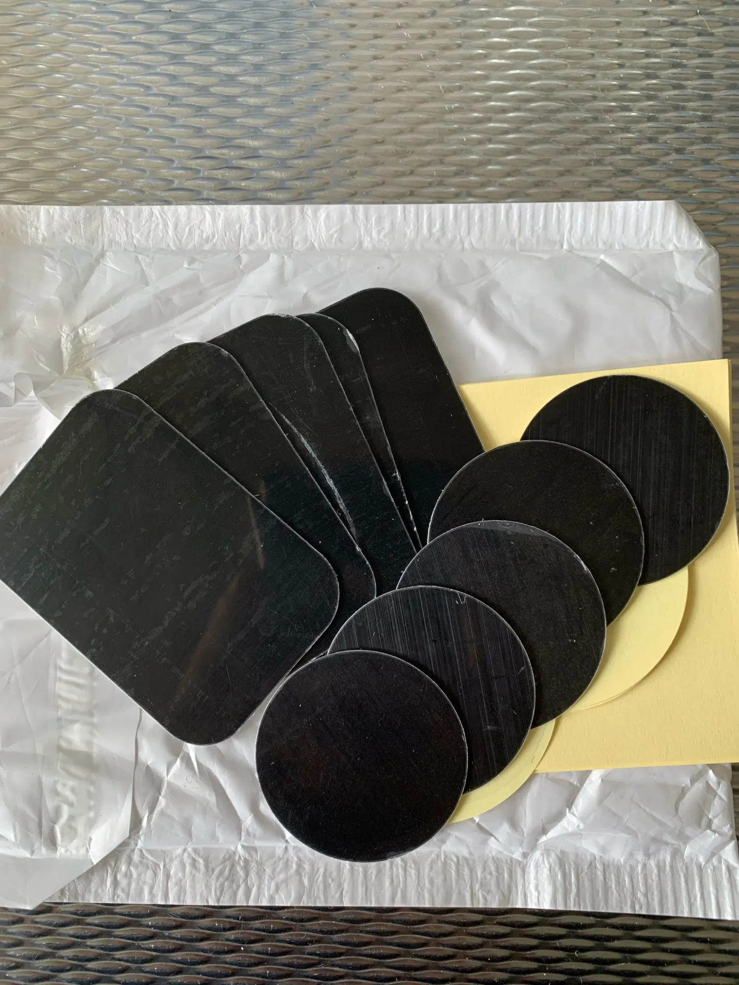 Супер. Надписей на пластинах нет, в комплекте 2 шт. Здорово, что есть пленка для наклеивания на сам смартфон, на которую уже клеится сама пластина. Сами пластины достаточно тонкие, наклеил на заднюю часть iPhone 11, через чехол MONARCH на держателе от ROCK держит отлично. Рекомендую.