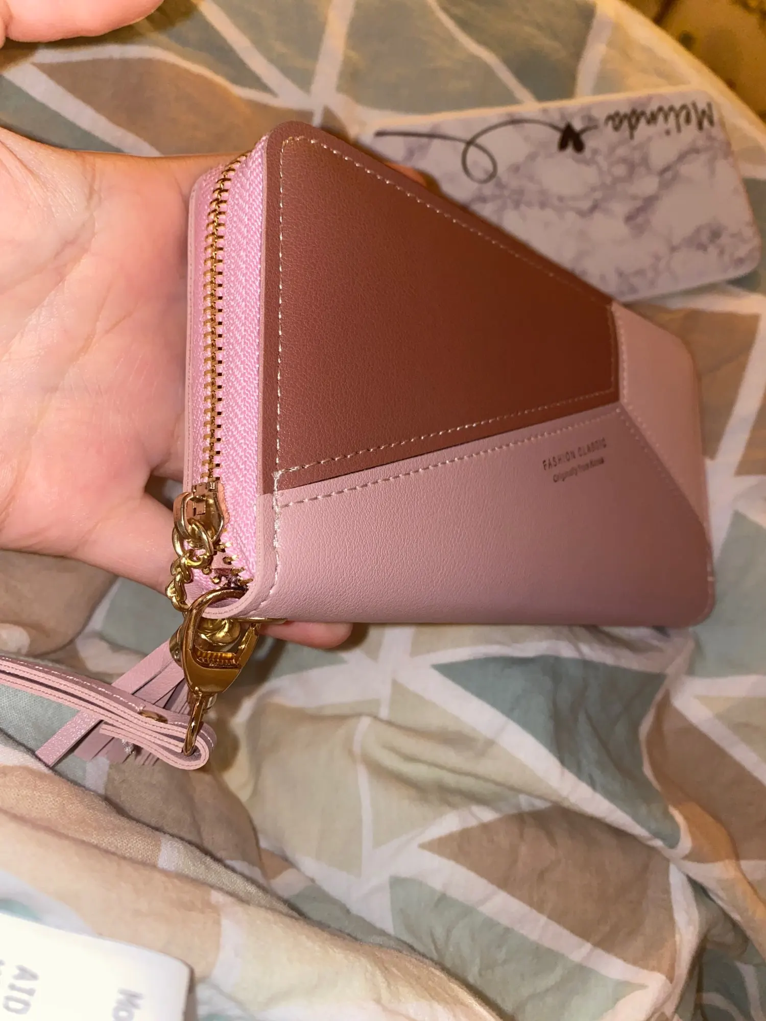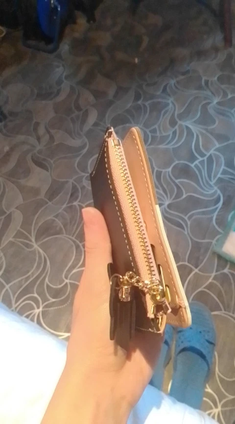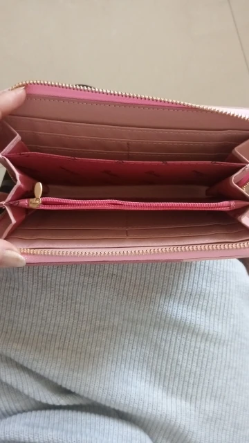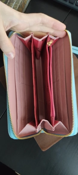 Цвет молнии совсем не такой как на картинке, не совпадает с оттенками кошелька. этот розовый тон не подходит. Но в целом кошелёк очень красивый и нежный.