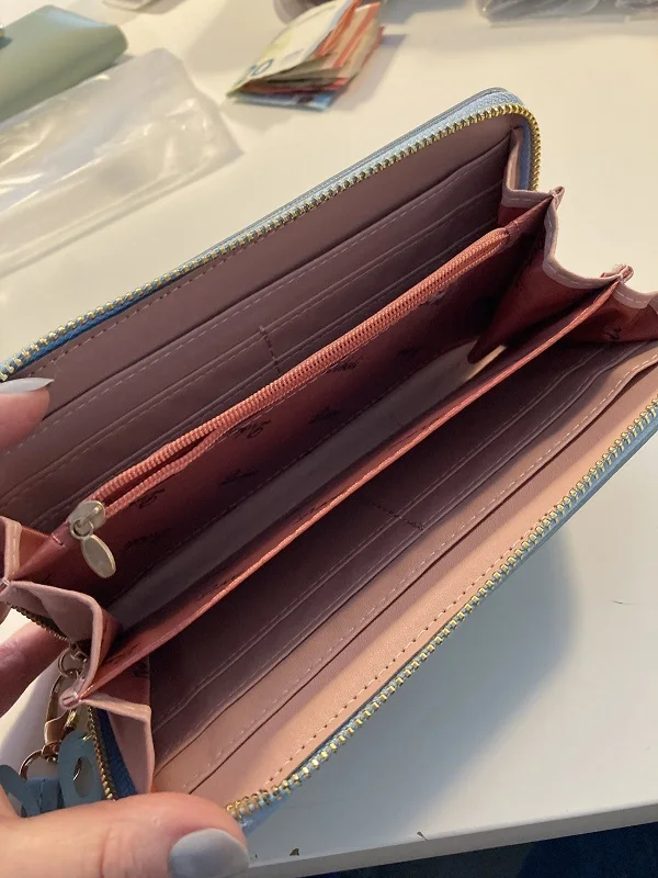 Этот бумажник отличный, он точно такой же, как на фотографиях, и он очень дешевый и доступный, я определенно рекомендую его любой женщине, которая хочет бумажник хорошего качества, который не является завышенной ценой.