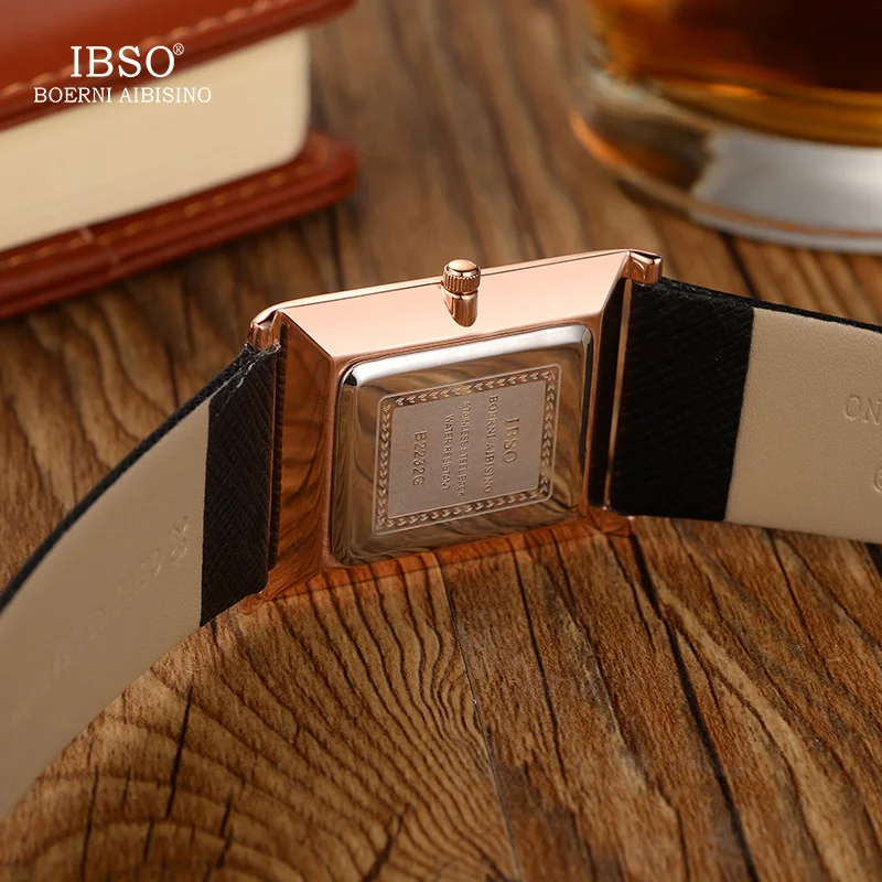 Мужские ультратонкие часы IBSO, черные наручные часы с кожаным ремешком, Прямоугольный циферблат, креативные кварцевые квадратные часы, мужские часы 2019