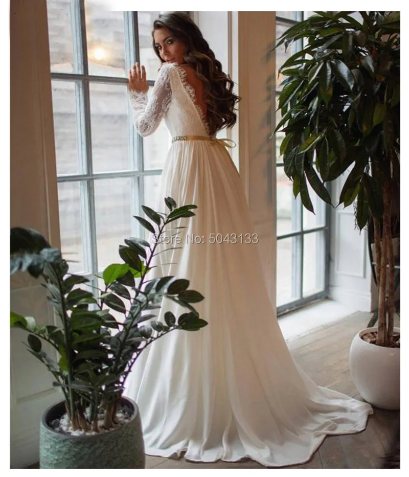 Кружевные шифоновые Свадебные платья с открытой спиной в стиле бохо 2019, пляжное платье невесты с длинным рукавом, свадебные платья, платье