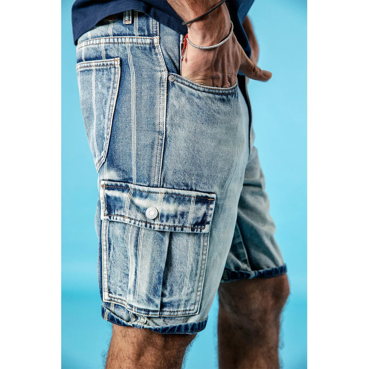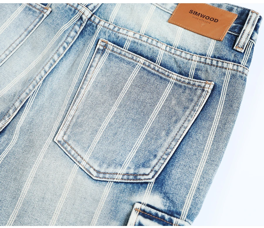SIMWOODНовинка 2022 года; Летние джинсовые шорты для мужчин; Шорты-карго с принтом моющиеся водоросли; Модные шорты в полоску в стиле хип-хоп из 100% хлопка; Брендовые шорты; 190333
