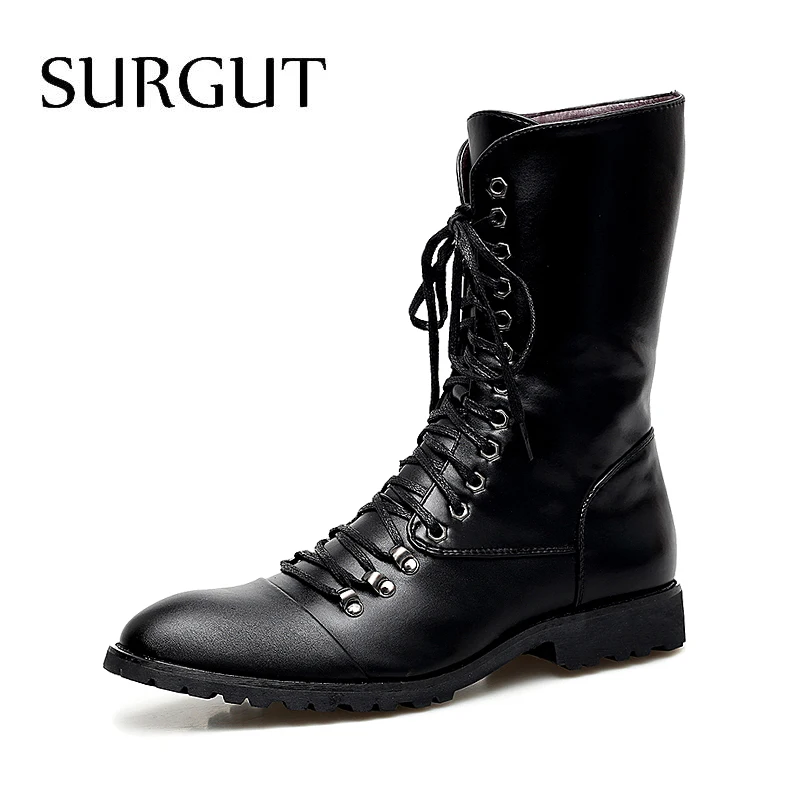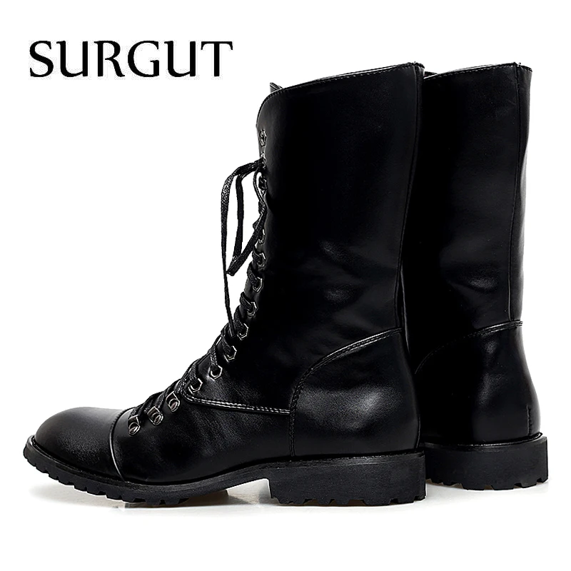 Мужские ботинки до середины голени SURGUT 2020, удобные легкие кожаные ботинки до середины икры для осени и зимы