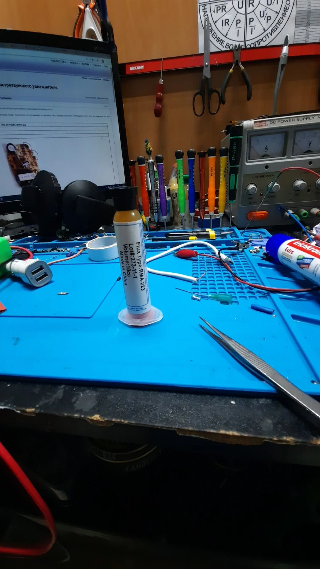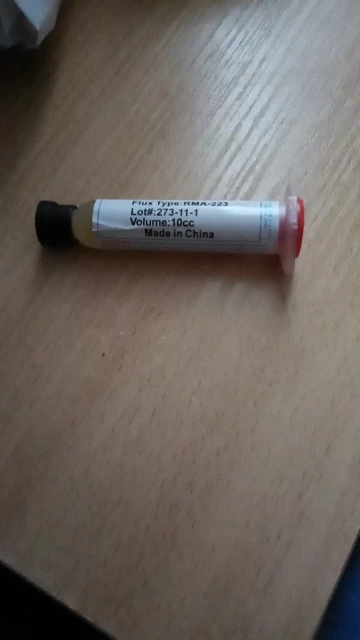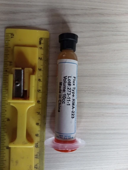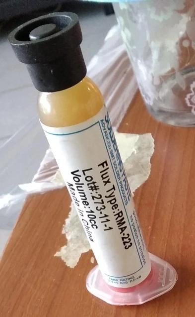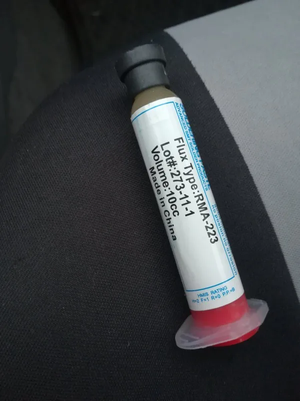 странный флюс. запаха нет. лудит плохо, для выпатвания деталец пойдет.