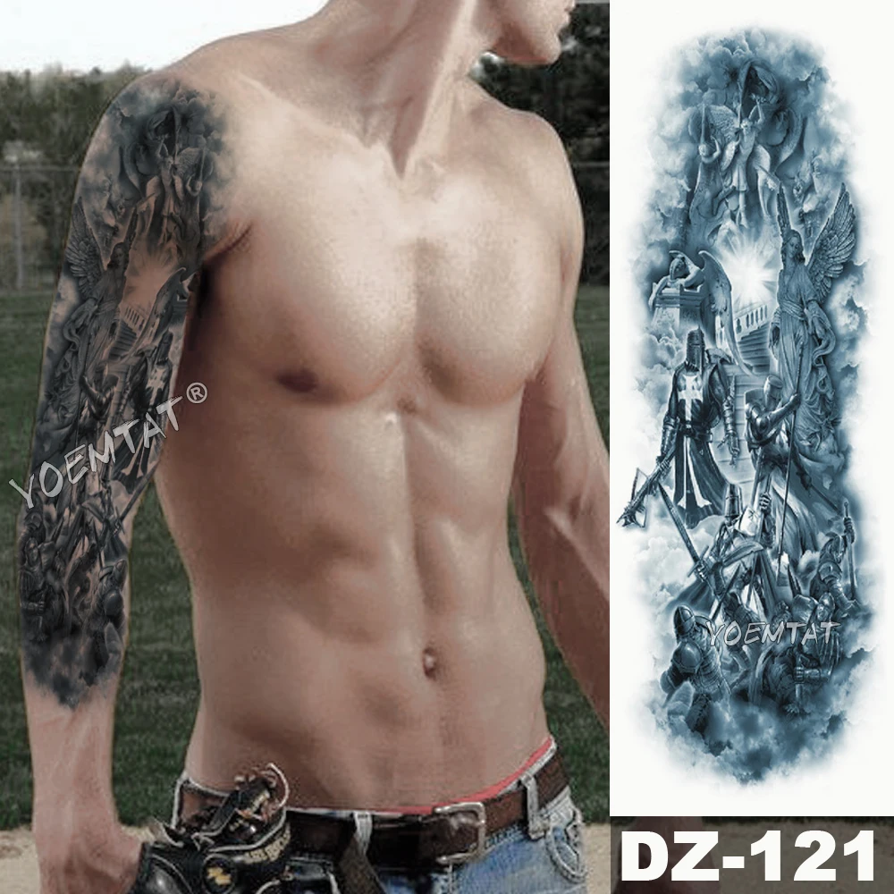 Большой рукав татуировки Крест Ангел гимн Водонепроницаемый Временн...