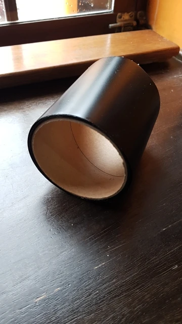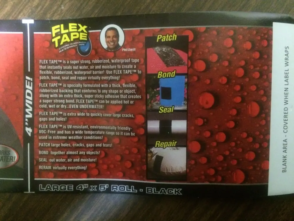 Я думал, лента резиновая, на самом деле плёнка ПВХ толщиной около 0,5 мм сверху матовая, довольно жёсткая, не тянется, с клеевым слоем нанесена на прозрачную плёнку подложку, которую снимаешь непосредственно перед использованием. короче, ничего сверхъестественного, обычная ПВХ плёнка самоклейка полоска шириной 10 см по цене квадратного метра более тонкой плёнки.
