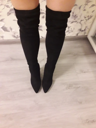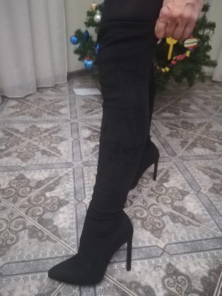 Сапожки отличные, качество очень хорошее. На мои худенькие ножки самое то, обтягивают, не топорщатся. Но есть одно но, ходить в них тяжело, даже мне привыкшей к высокому каблуку.