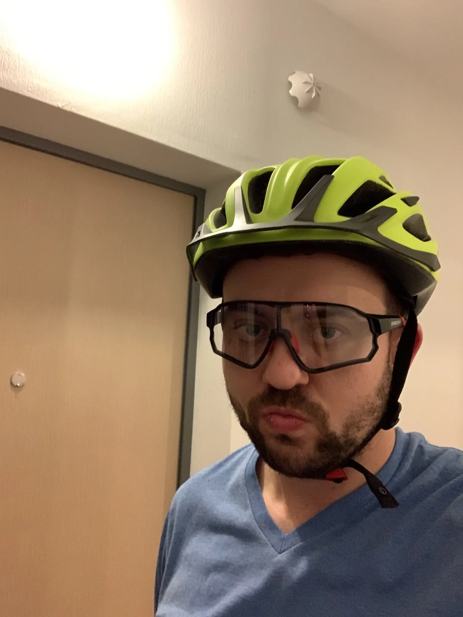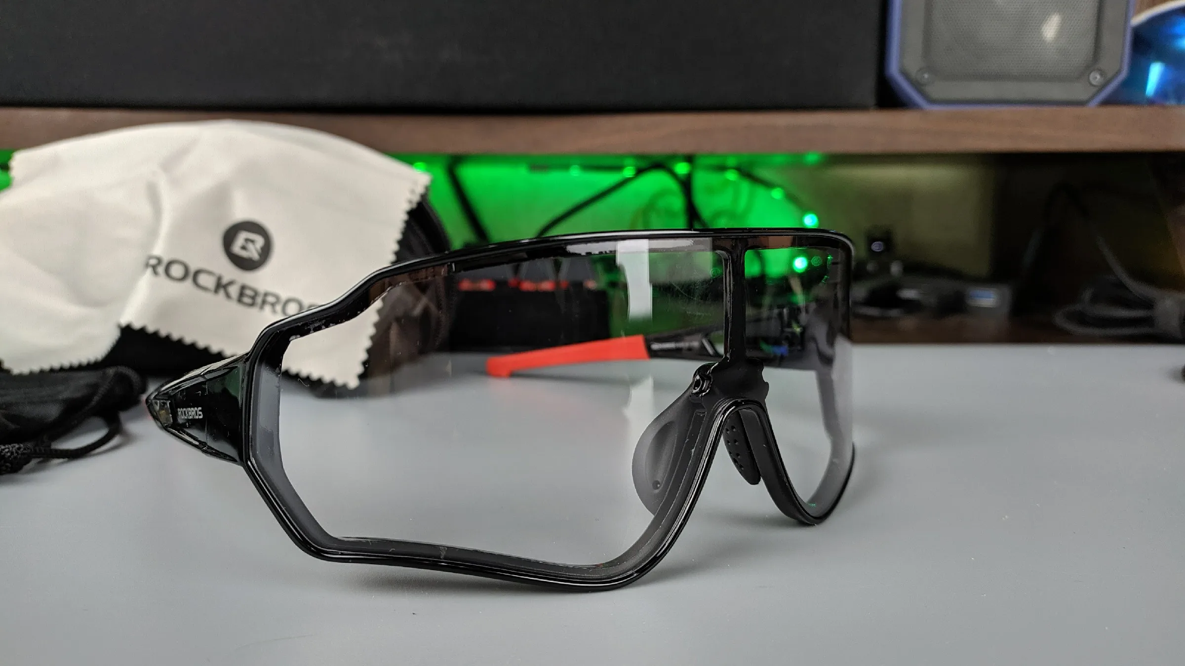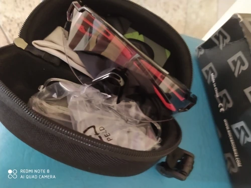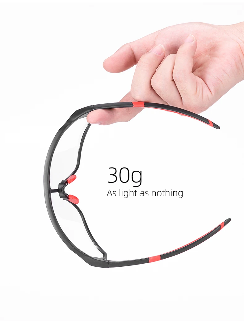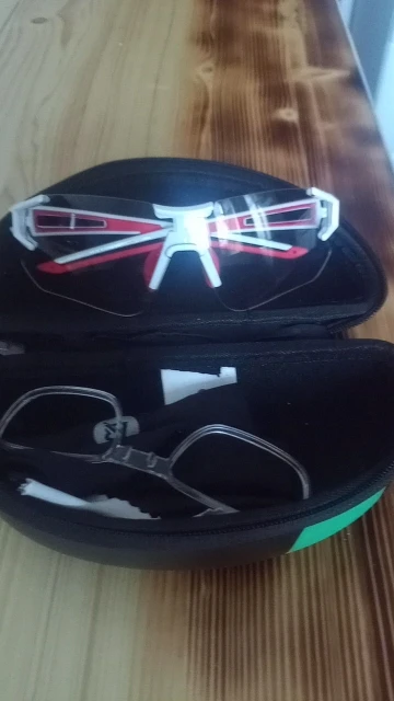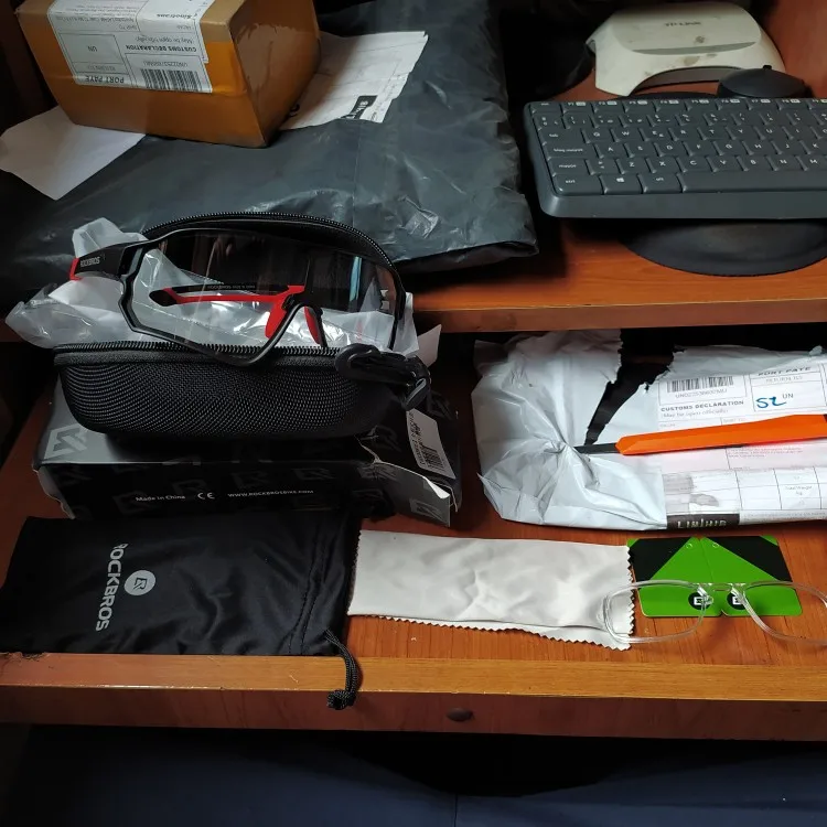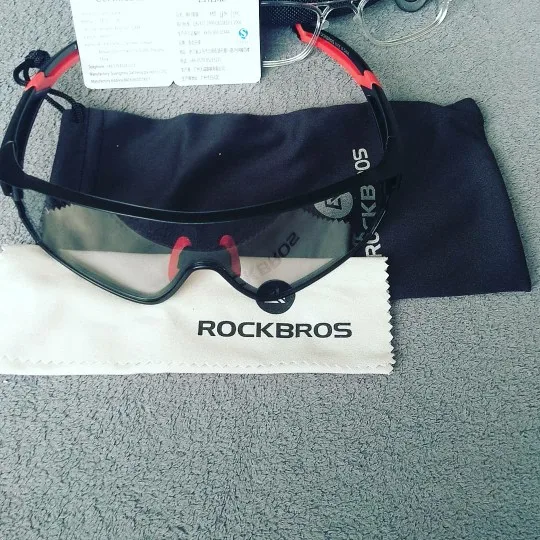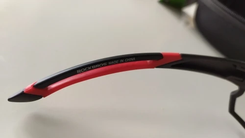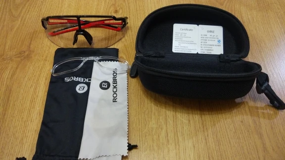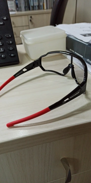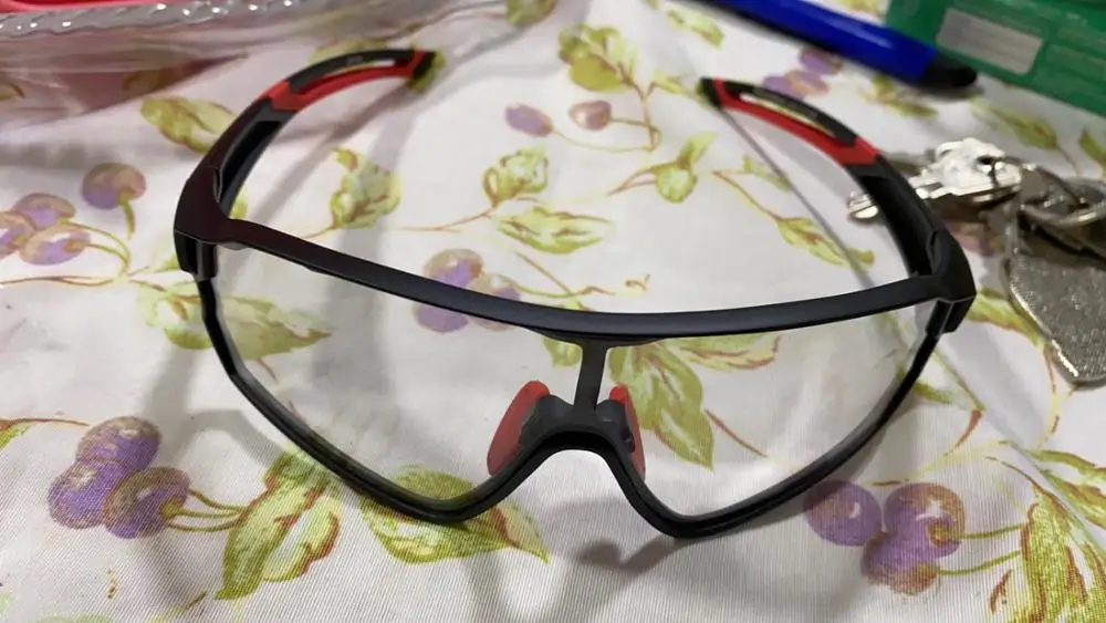 Пришло быстро, курьером. Качество хорошее. Красные места дужек сгибаются под размер головы. Мягкие резиновые упоры под переносицу тоже подгибаются под мой кривой нос. Верхняя рамка тонкая, шоссейной посадке не мешают. Затемнение не получилось затестить. Пасмурно уже неделю.