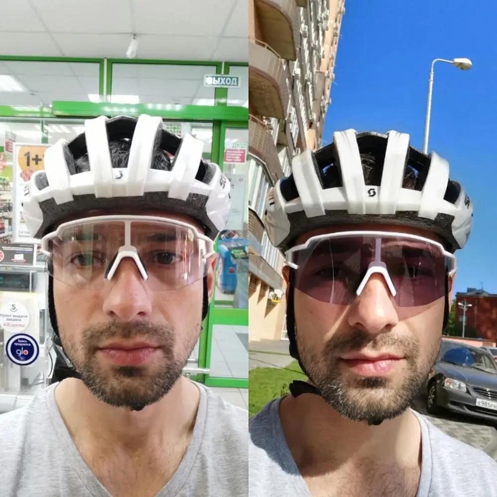 Хорошие очки за свои деньги. Но есть минусы: не очень комфортные и качественные душки (смог привыкнуть) и пот, попадая прод перегородку остаётся там, что портит внешний вид очков. Фотохромное затмение работает. Обдуваются хорошо - запотевают гораздо меньше моих предыдущих очков. В целом покупкой доволен.