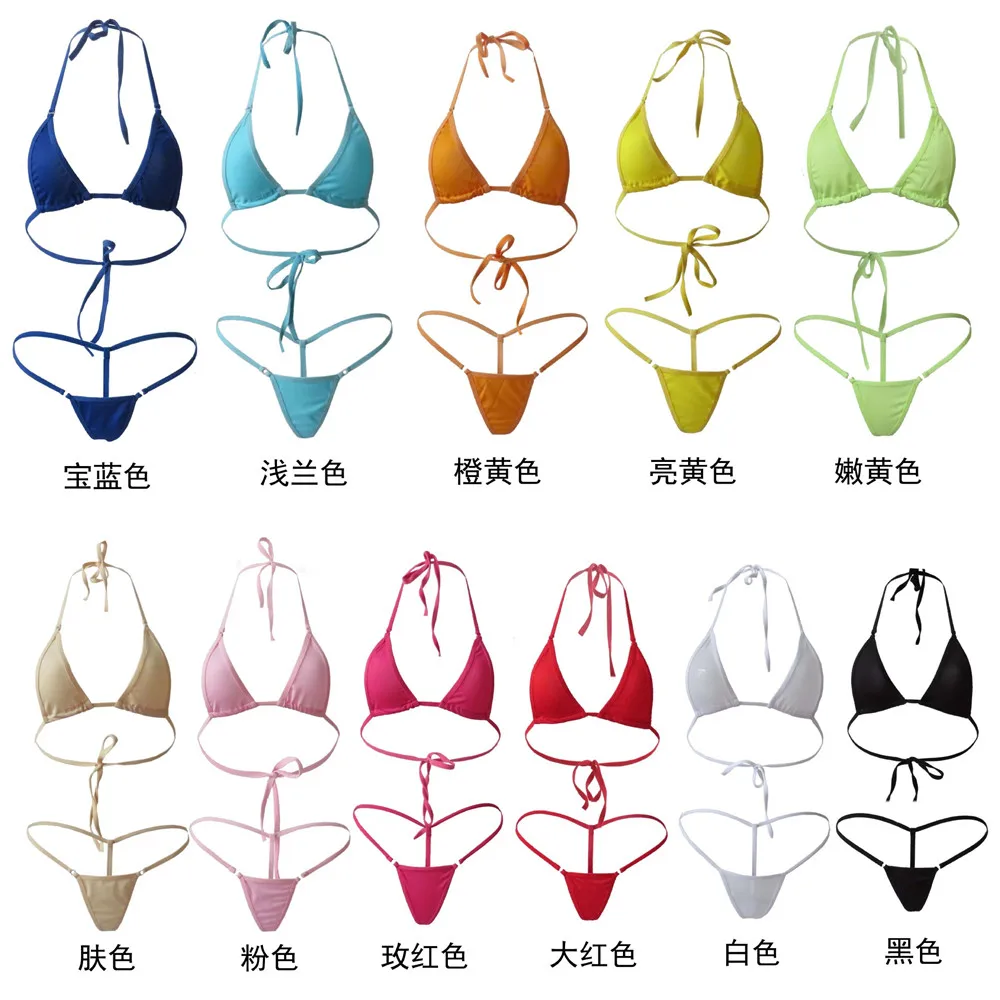 Микро Бикини 2020 mayo сексуальный однотонный висячий шейный крошечный женский пляжный солнцезащитный купальник женский купальник бикини мини бикини