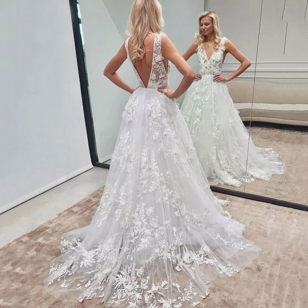 Кружевное бальное платье с открытыми плечами, V-образным вырезом и аппликацией