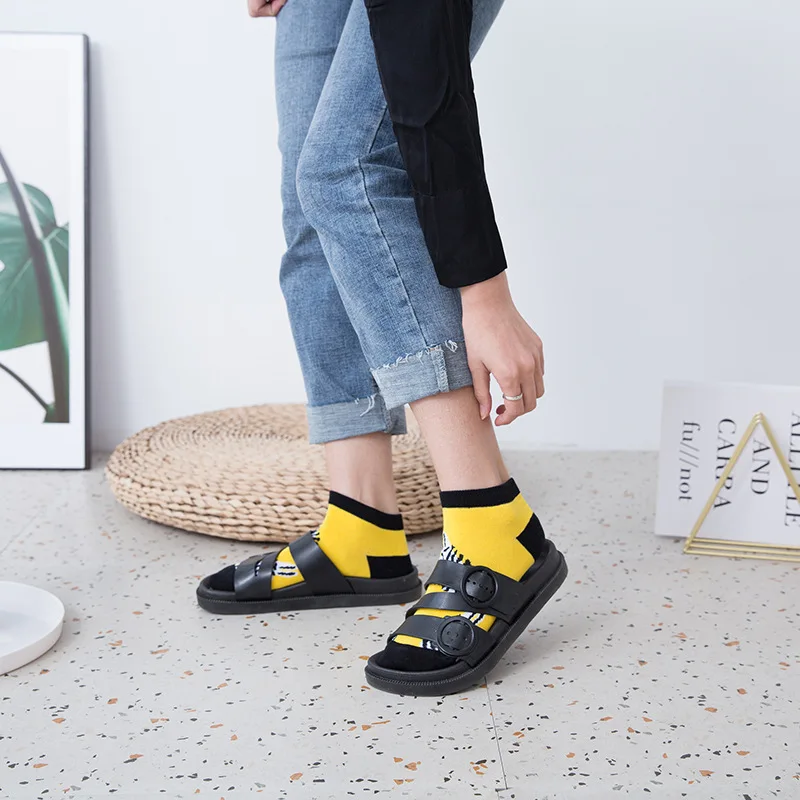 Мужские и женские короткие носки, короткие хлопковые носки до щиколотки с принтом авокадо, яблока, ананаса, вишни