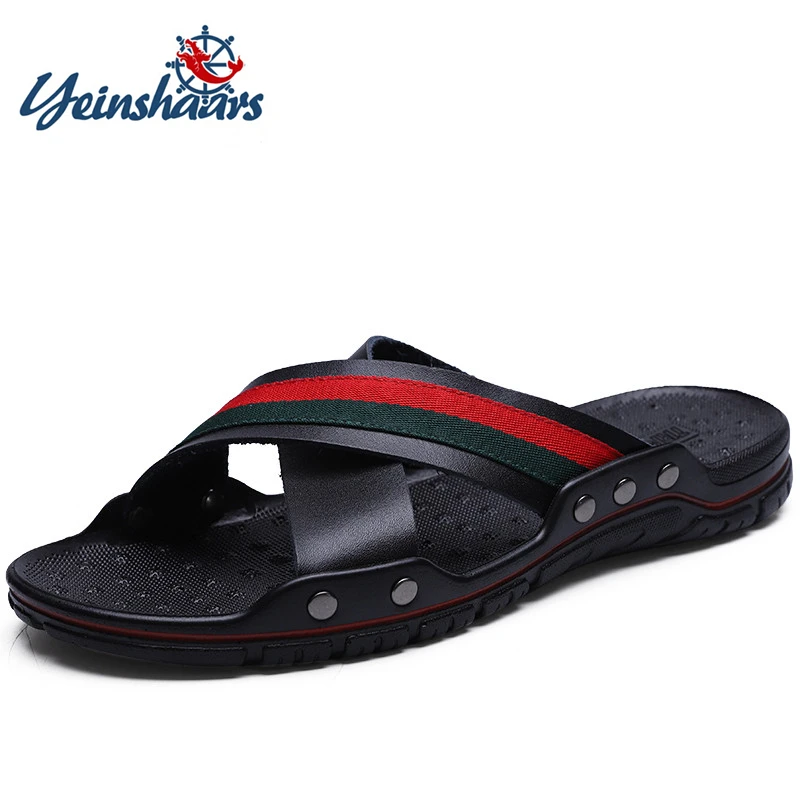 Мужские летние шлепанцы YEINSHAARS, коричневые Пляжные Шлепанцы из натуральной кожи, с перекрестными ремешками, для воды, большие размеры 38-47, лето 2021