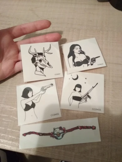 Посмотрим сколько будет держаться, а так рисунок очень четкий , положили подарок в виде ещё одной татухи . Единственный минус - долгая доставка.