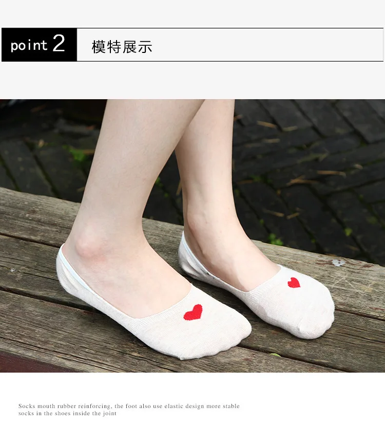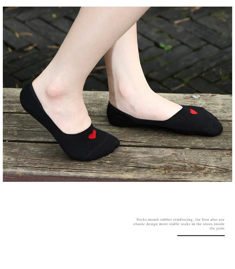 Носки-невидимки женские короткие с сердечками, удобные хлопковые ко...