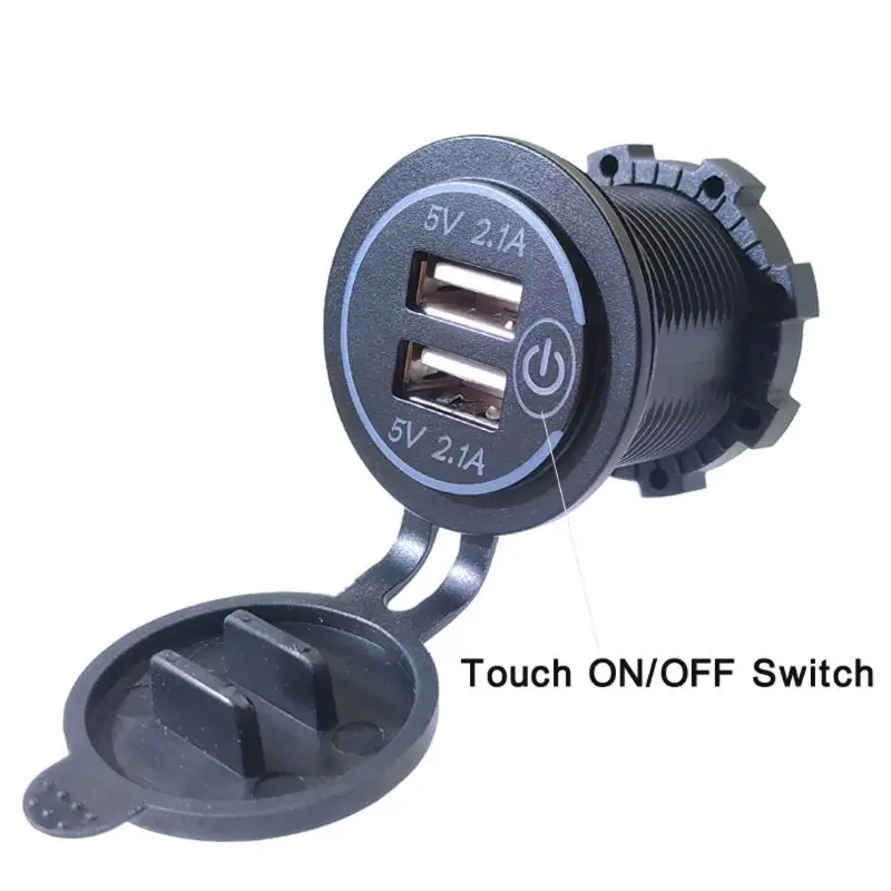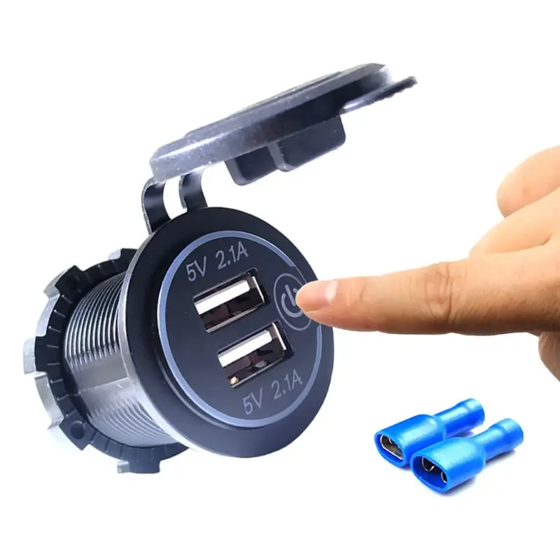12 В 24 в двойной USB 2.1A светодиодный автомобильный адаптер зарядного устройства с сенсорным переключателем, кабель питания для автомобиля, лодки, морского грузовика, мотоцикла, кемпера V
