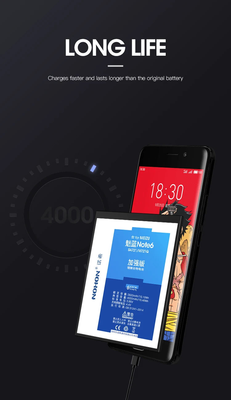 NOHON батарея для Meizu Meilan M6 M5 M2 Note 6 5 2 BA721 BA621 BT42...
