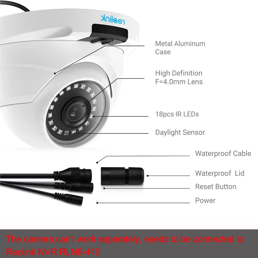 Работает только с Reolink NVR: Камера Reolink B400/D400 4MP POE может работать только вместе с Reolink NVR: RLN8-410 или RLN16-410 и Reolink наборы или системы. Не поддерживает sd-карту, третьи вечерние программы, ONVIF или NVRs от других брендов.