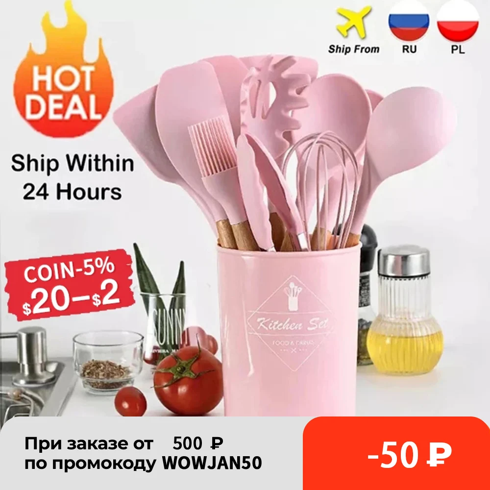 Силиконовая кухонная утварь, набор кухонной утвари, антипригарная посуда, лопатка черпак, измельчители яиц, деревянная ручка, набор кухонных принадлежностей