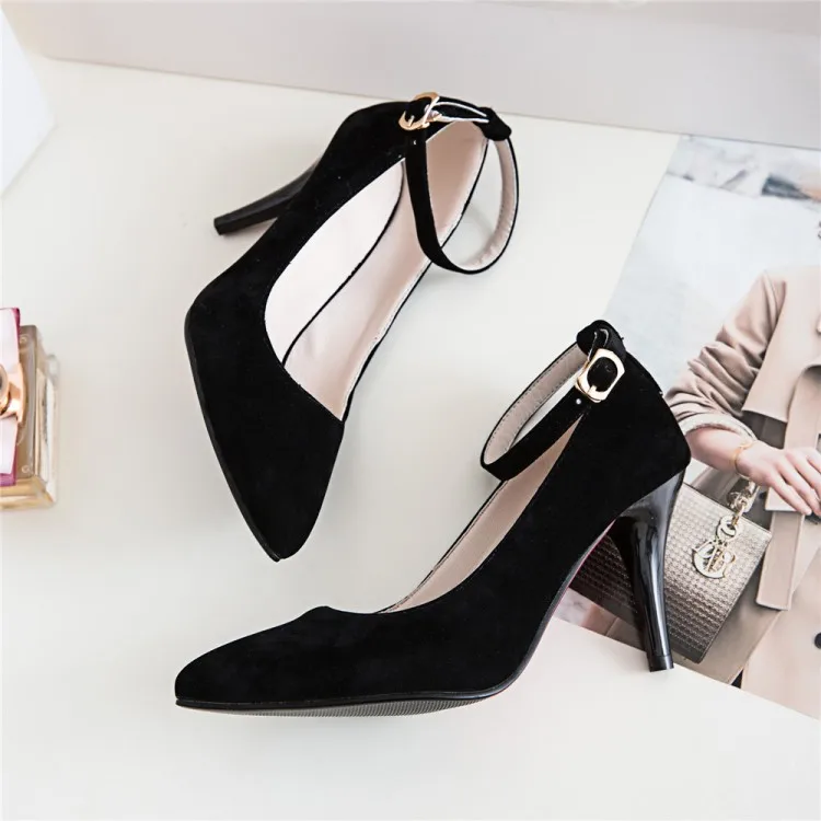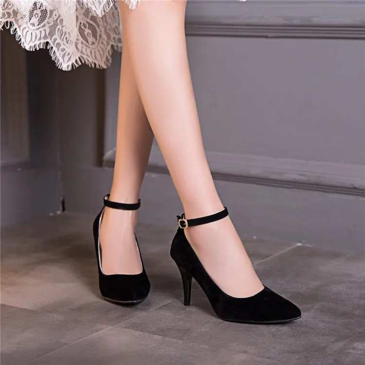 Женские туфли на высоком каблуке, туфли-лодочки с острым носком, с ремешком, большой размер 13, 14, 15, 16
