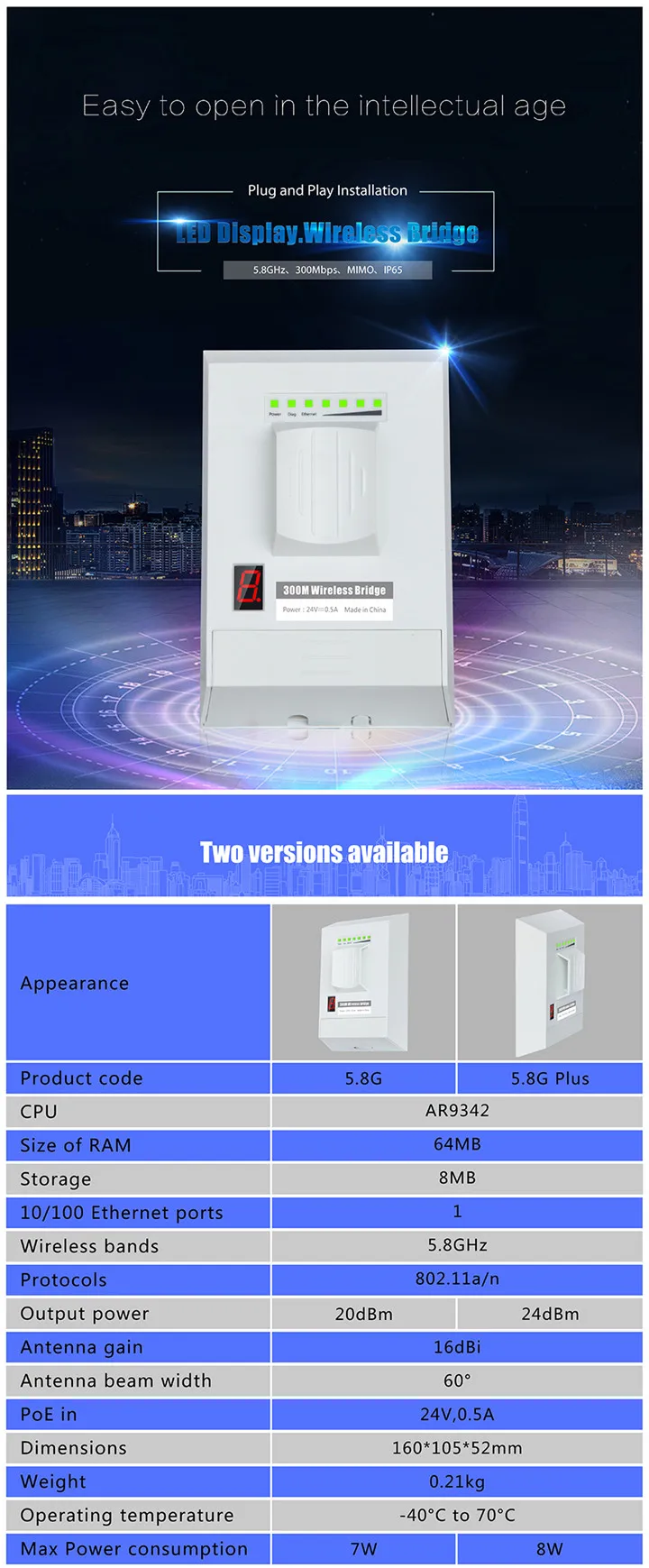 5,8 ГГц 300 Мбитс IP65 светодиодный дисплей беспроводной мост с антенной 8dbi для mimosa для Ubiquiti