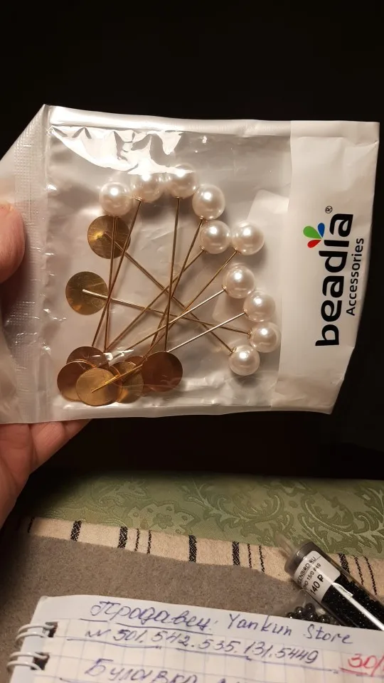 Брошь на булавке, с золотымсеребряным покрытием и искусственным жемчугом, 10 шт.лот