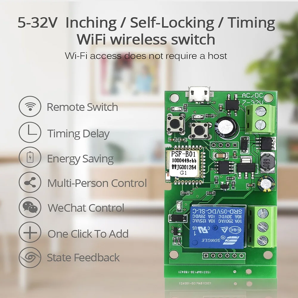 Умный релейный модуль Wi-Fi eWelink, модуль таймера 5 В12 В24 В32 В, беспроводной пульт дистанционного управления, вводавтоблокировка, для Alexa Google home