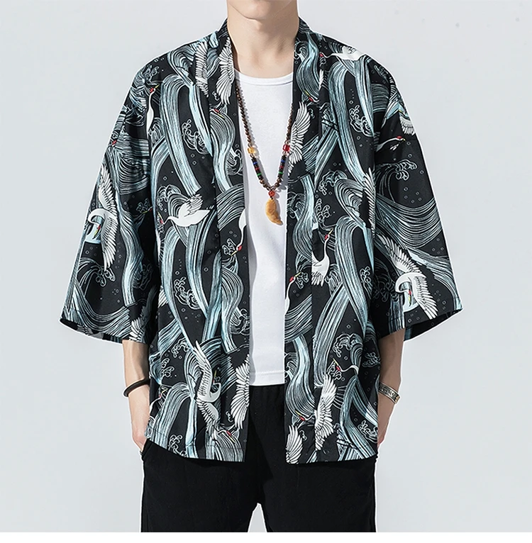 Кимоно мужское в японском стиле, юката, свободный солнцезащитный ка...