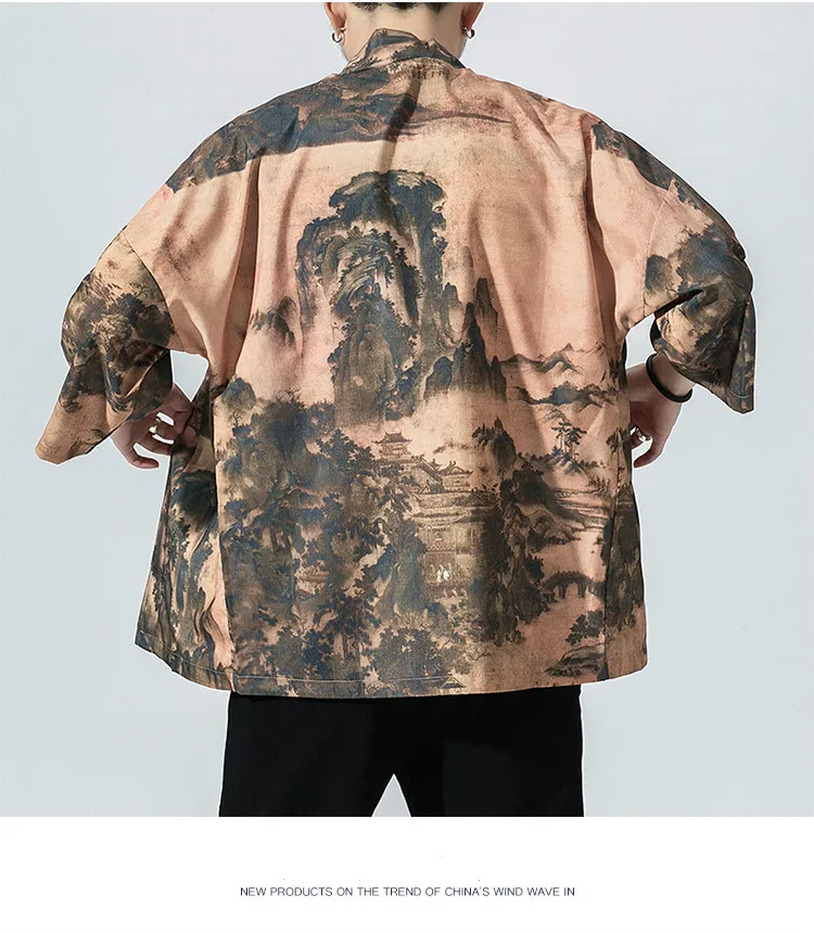 #5004 мужские кимоно рубашка в китайском стиле Стиль с принтом в ви...