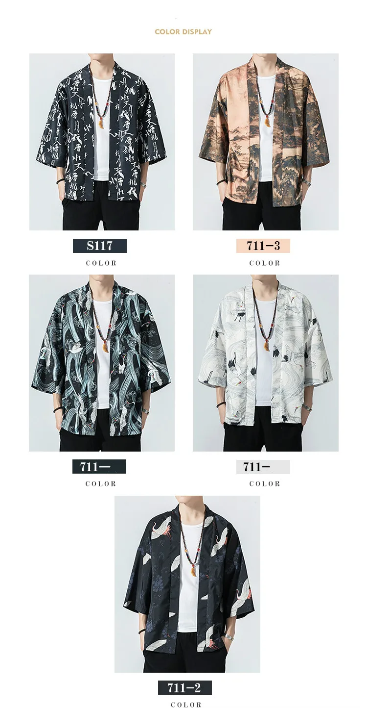 2019 оригинальные мужские кимоно в японском стиле, кардиган, рубашк...