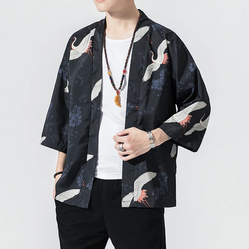 Мужской кардиган-кимоно, в японском стиле, Повседневный, свободный,...