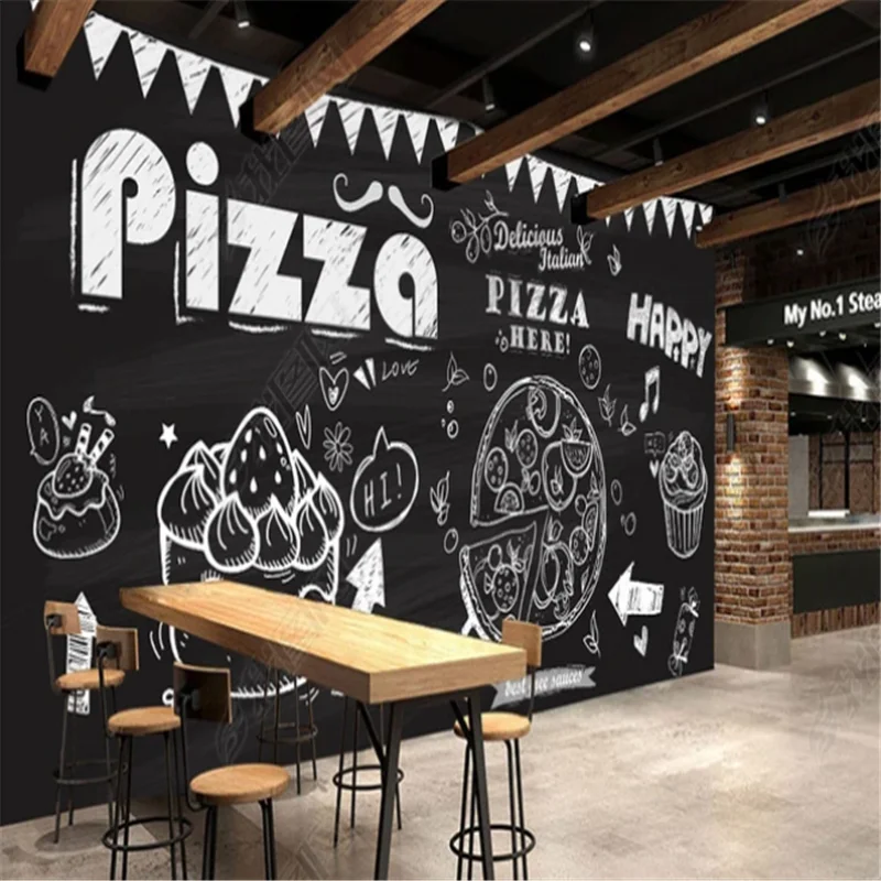 Мел ручная роспись росписи пиццы торт магазин настенная бумага s промышленное украшение Кофейня фон настенная бумага papel де parede 3d