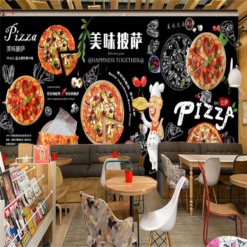 Креативная тема для пиццы настенная бумага 3D современный фаст-фуд западный ресторан снэк-бар промышленный декор черный фон настенная бумага