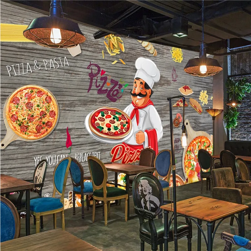 3D обои для пиццы в ретро-стиле, с рисунком из мультфильма, для пиццы, фаст-фуда, для ресторана, снэк-бара