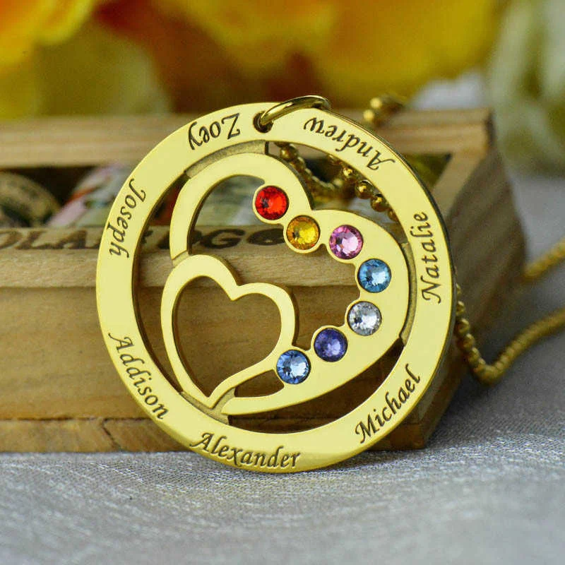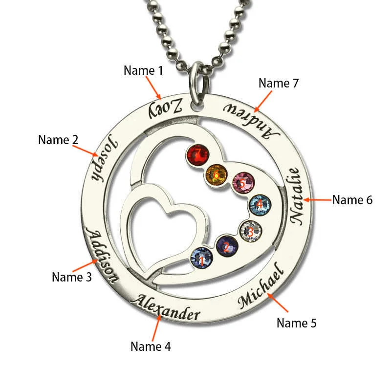 Strollgirl 925 пробы серебряные изготовленные на заказ Цепочки и ожерелья мамин сердце в сердце Цепочки и ожерелья с 7 Детские имена и камнях Серебряные ювелирные изделия