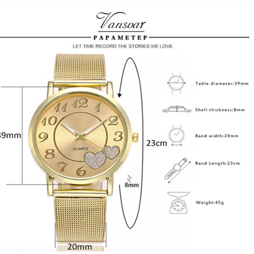 Vansoar Модные Простые Брендовые женские часы ремешок из нержавеющей стали с пряжкой женские часы кварцевые наручные часы zegarek damski