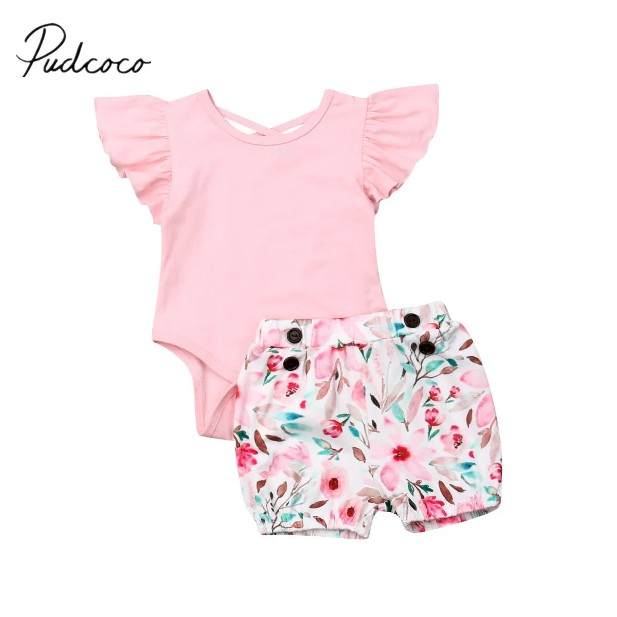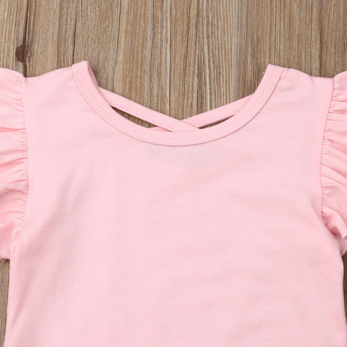 Детский однотонный комбинезон с короткими рукавами и оборками, на возраст 0-24 месяца